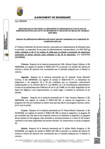 Anuncio calificaciones definitivas 1er ejercicio TEST